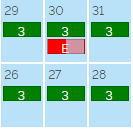 A part-day absence is shown with the Absence code and colour only in the appropriate part of the day. For example, a part day 'Early leaving' absence is shown for day 30 in the example below: