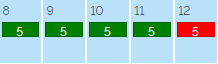 Leave slots are an optional preference your system administrator can set to appear on the Absence profile. With leave slots switched on, only a certain amount of employees from a specific Group are allowed to be absent at a set period of time. The leave slot will appear in the top part of the day and is colour coded, for example if the leave slot is red, then all the slots have been filled and no more absences can be booked on that day. The following example only allows five employees at a time to be absent: