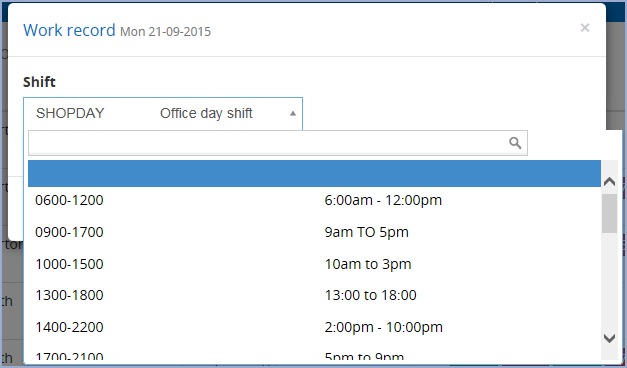 Select a new Shift from the list and click Submit . The system will then reprocess the record using the new Shift and any changes will be displayed in the record. This may introduce other Anomalies which will also need to be dealt with.