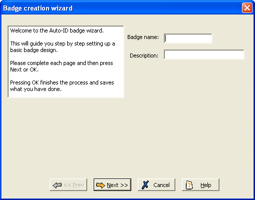 The Badge creation wizard is a tool which takes you through the process of creating a new badge design in easy steps. You may find it easier to create a simple design using this wizard, and then, if you wish to make it more advanced, use features of the Badge designer and Badge properties forms.