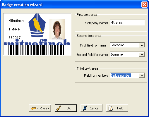 The Third text area is used for further information from a field (in the above example, Badge number is selected).