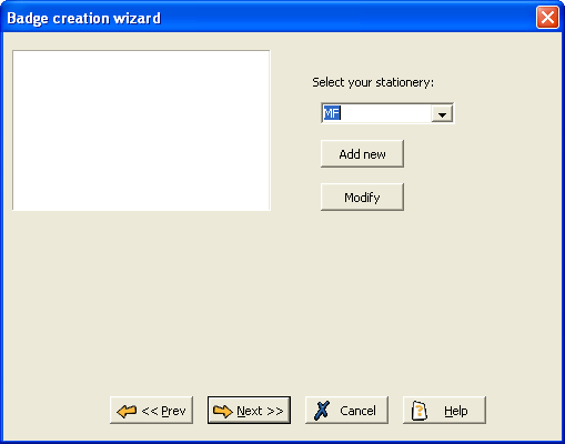 On this screen, select the type of stationery to use for the card, from all those that exist on your system. If you wish to amend this stationery for the new badge design, click the Modify button to open the Stationery details form, which can be used to change any settings of the selected stationery type (for details see Design stationery, page 75).
