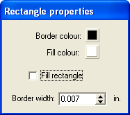 Select the Border colour and Fill colour by clicking on the relevant colour box and choosing the colours you require from the options given. You can define custom colours if necessary. The Fill colour will only appear if the Fill rectangle box is ticked. Otherwise the rectangle will be transparent.