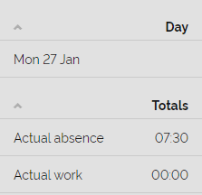 Note: the totals for an individual day can be viewed by clicking on the day header and the totals for the individual day will appear in the right-hand pane. For example: