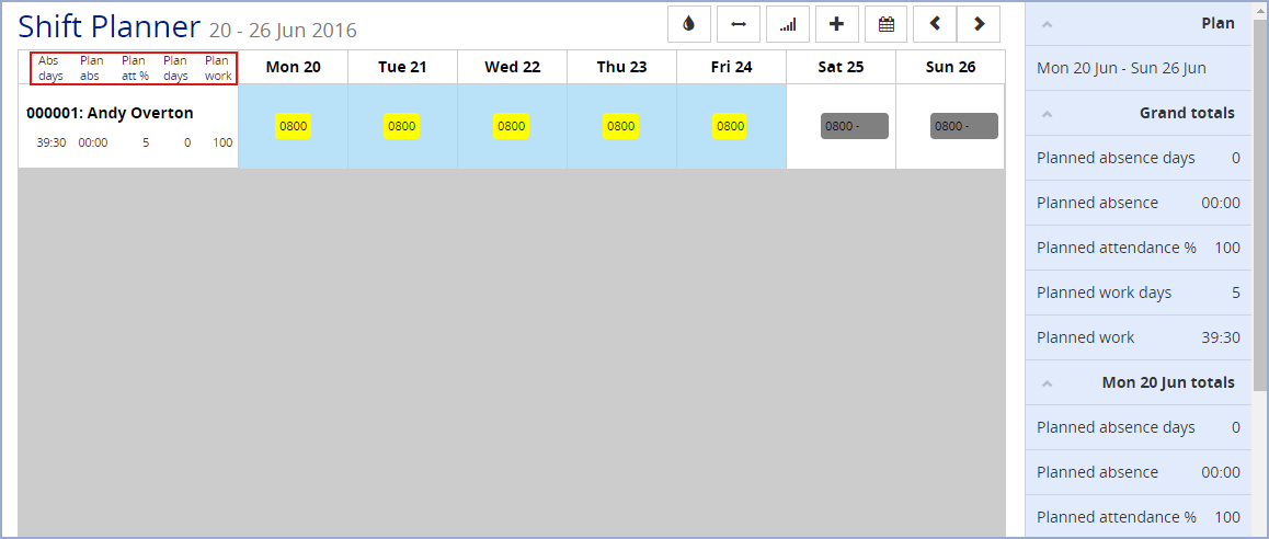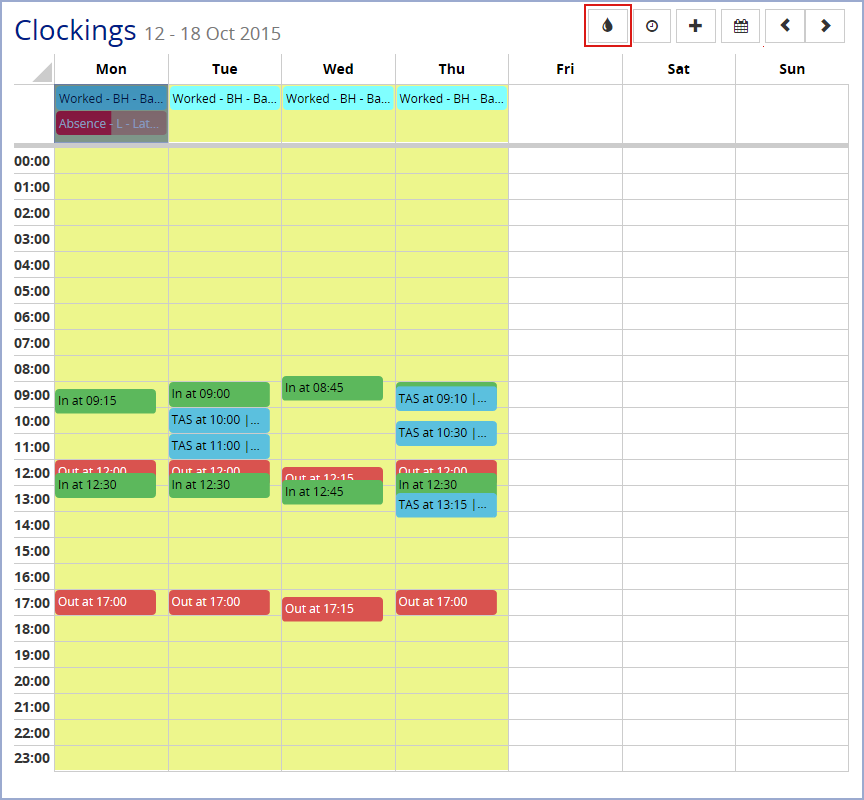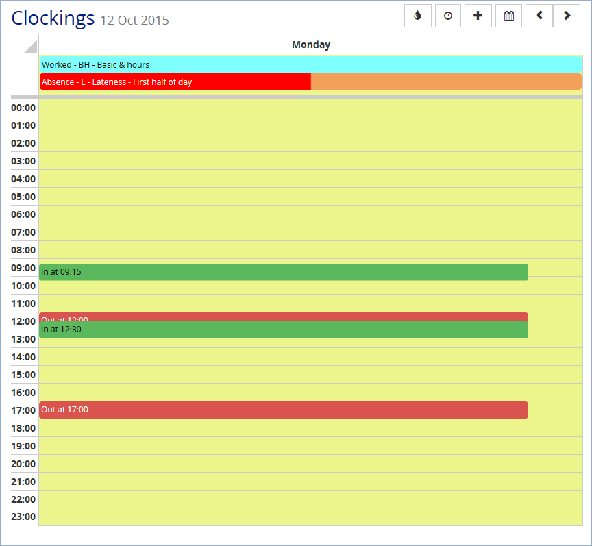 Note: colour keys for different Data types, Absence codes and Worked hours code are defined by your system administrator and so may be different from those displayed here. |