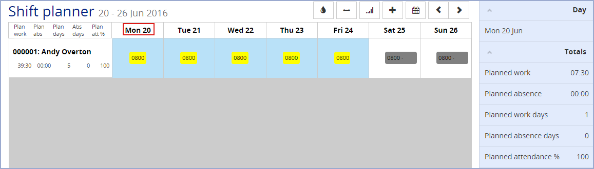 Note: the totals for an individual day can be viewed by clicking on the day header and the totals for the individual day will appear in the right-hand pane. For example: |