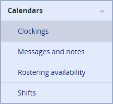 Note: your Supervisor defines what calendars will be available to you and the Data types they contain, so your Calendars may be different from those displayed here. |