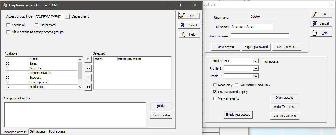 TMS 8 version 8.36.5.0 has introduced a new feature to improve the Hierarchical security feature. Hierarchical security is an optional feature in WinTMS that creates Users when you edit an Employee that does not have a User associated with them. Prior to version 8.36.0.0, this newly created User would automatically default their Employee access to the last Lookup that you added a User to. This can lead to problems where users are not careful when they automatically create Users using Hierarchical security, and leads to Users in random Lookups. For example, in the screenshot below, a User has been added to its own Lookup: