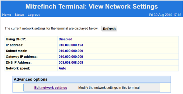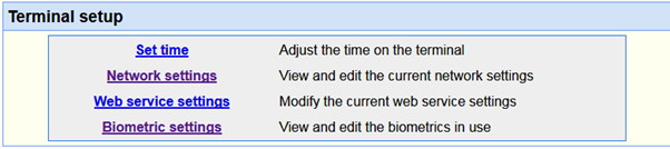 link for Network Settings in the Terminal Setup section of the Main Menu