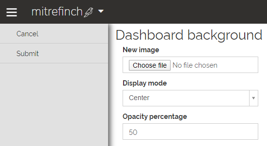Once an image has been uploaded, it will be displayed at the top of the main window on this page, as can be seen with the Mitrefinch logo in the image above. After choosing the desired settings, select Submit ti apply and save your changes, when the image has been saved successfully, the following message will be visible: