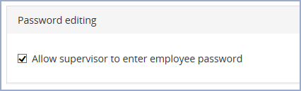 Simply remove the tick from the check-box to remove a Supervisor’s permission to enter new passwords for Employees. Once this has been done, when a Supervisor navigates to the Employee password page, they will only have the option to Reset the password, not to enter a new one.