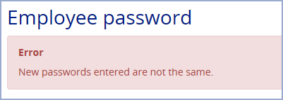 The values you enter in the New password and Confirm password fields do not match. A password change mismatch message is displayed, for example: