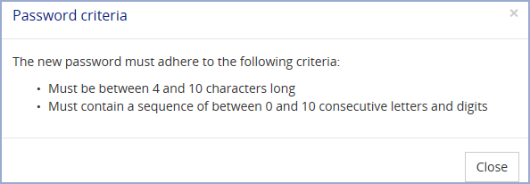 Click Close to exit the Password criteria pop-up.