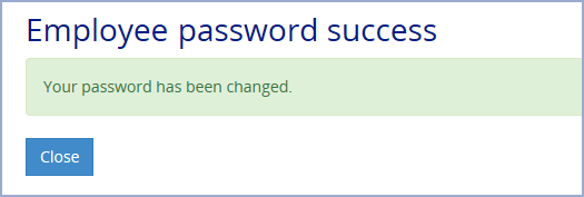 Click Submit in the left-hand pane to save the new value. If your new password meets the criteria and the values entered in the New password and Confirm password fields match, a password change success message is displayed and your selected Employee's password is changed. For example: