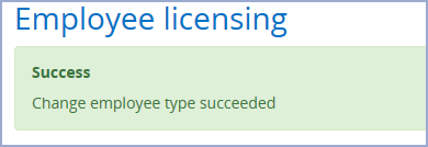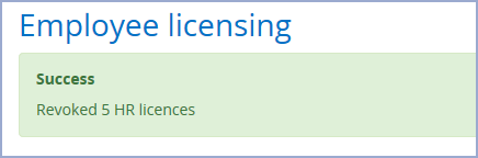 Click Cancel to return to the Employee licensing page or click Submit to assign or revoke the licence(s) from your selected Employee and return to the updated Employee licensing page. A message will appear at the top of the page if successful: