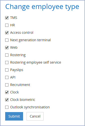 The Change employee type page will open: