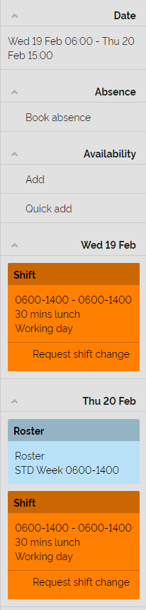 You can request a Shift change or find out further information about a Shift by selecting a single day or highlighting a date range. More details will appear in the right-hand pane.