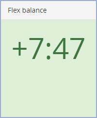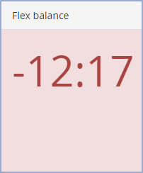 The previous example shows a positive Flex balance of 7:47 hours on the left, as indicated by the green + symbol and background. A negative Flex balance of -12:17 hours is shown on the right with a red - symbol and background.