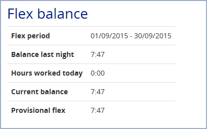 Flex period — the start and end dates of the period your Flex balance relates to. In the previous example this is from the 22nd to the 28th of September 2014