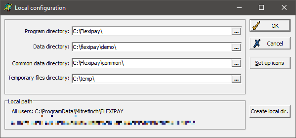 If you do not have this feature, then you will need to use the LOCALCFG application to change this. You may be able to access this application through the start menu by navigating to Programs -> Mitrefinch -> Flexipay. Otherwise, you will find the application in your Winpay folder. Double click on it to open it.