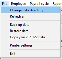 You will find that you need to process the first period of the new 2022/2023 tax year and then return to perform the year-end reports for the previous year. In order to prepare the live data to process the new tax year, this includes zeroing the employee year-to-date totals. As a result, it is important that you take a copy of the current data to enable the year end reports before the totals are zeroed. This document explains how to do this within Flexipay. Before you do this, however, you should make a backup of all of your data directories.