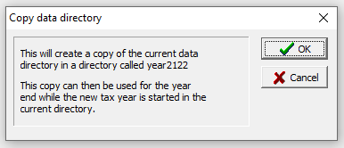 Once that option is selected, a message box will appear asking you to confirm. Click OK to continue. Flexipay will then create a folder called year2122 in the location specified in your settings.