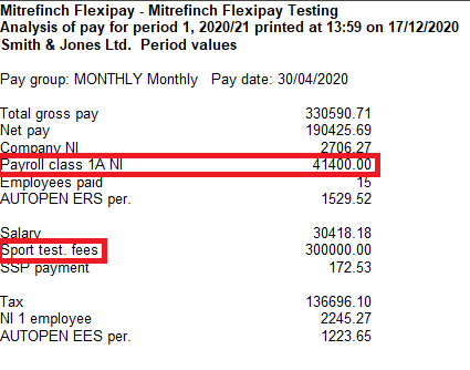 As of version 2.53.1.0 Flexipay will now display Class 1A National Insurance contributions on the Analysis of Pay Elements report, such as those generated by a Sporting fee: