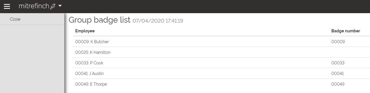 The Group badge list page is a list of your selected Employees that have a badge number assigned to them.