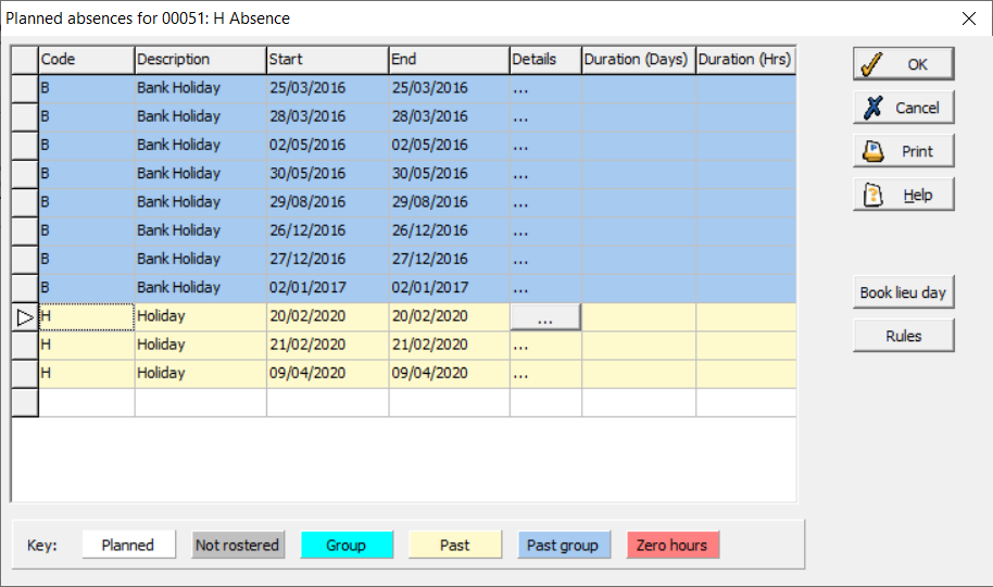 Roster – You will need to check that the employee’s Roster is valid for the period into which you are entering historical absences. More details on this are below.