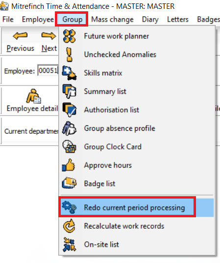 In WinTMS, go to the “Group” menu, “Redo current period processing”.