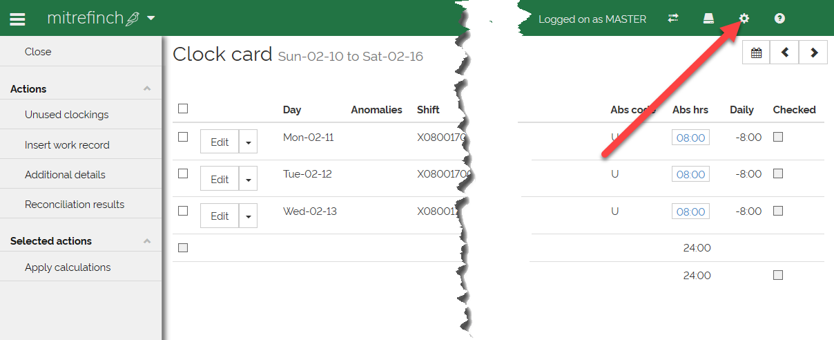 Went to the Employee Clock Card and press the Setting Cog and went to Modify Preference.