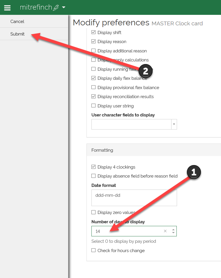 We scrolled down to FORMATTING and changed the Number of Days to Display to 14 and then pressed Submit.