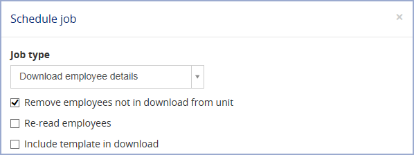 Some Jobs have additional options depending on the Job type. For this job, select Remove employees not in download from unit.