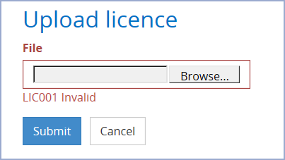 Under certain circumstances it will not be possible for you to upload a licence and an error message will be displayed. The causes of the different errors and warnings you may see are detailed below.