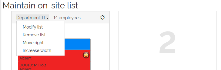 Increase width — an On-site list can spread across multiple columns, up to four columns wide. This option will be available if there is an empty column next to the On-site list. An additional option Decrease width will be available if the list has already been increased in width
