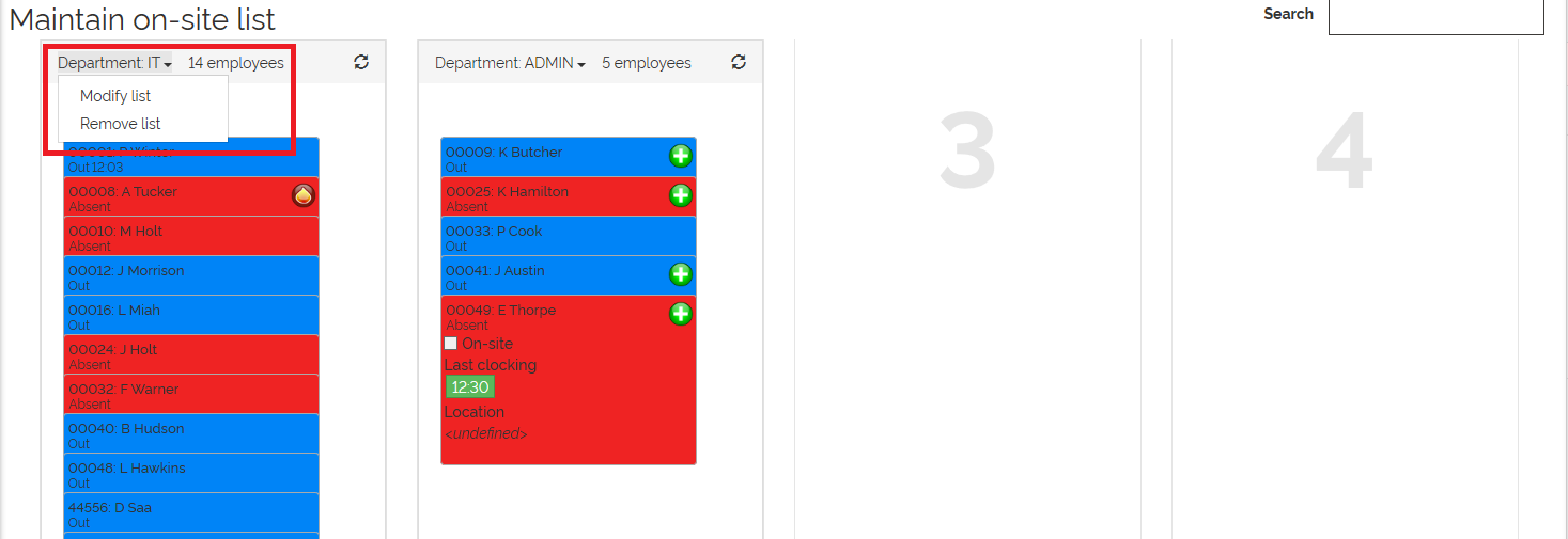 If you had On-site lists that were already present, when you navigate to the Maintain on-site list page, there will be additional options from a drop-down menu available and the ability to drag and drop lists into different columns.