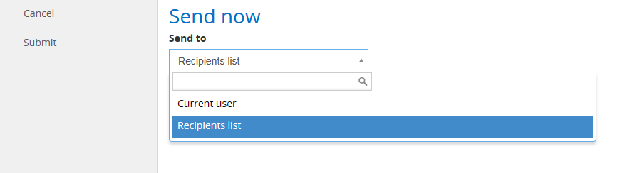 Select from the drop-down list where to send the message to. You can either choose to send the message to the current user who is logged in or to the recipients you have entered in the recipients detail section on the Modify message page.