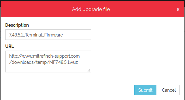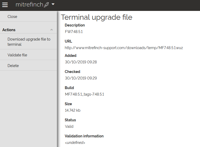 Next validate the upgrade file. On the Terminal site planner click Terminal upgrades and click on the link for the firmware