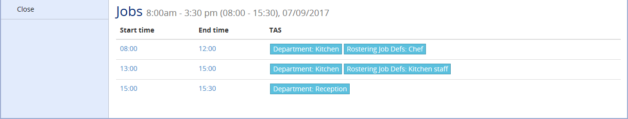 A Jobs page is available in the Clock Card. This displays the jobs from days that have been processed. Note: jobs cannot be edited if the day has been processed.