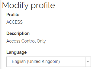 To change the language associated with a Profile, click on the language for the Profile you wish to change. The Modify profile page opens, for example: