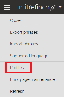 A TMS profile language is the language or Culture defined for a TMS User profile (Supervisor and Employee profiles). To view the language associated with different profiles, navigate to the main Language maintenance page, by selecting Language maintenance from the menu in the drop-down Header pane, then click the Profiles action in the left-hand navigation pane: