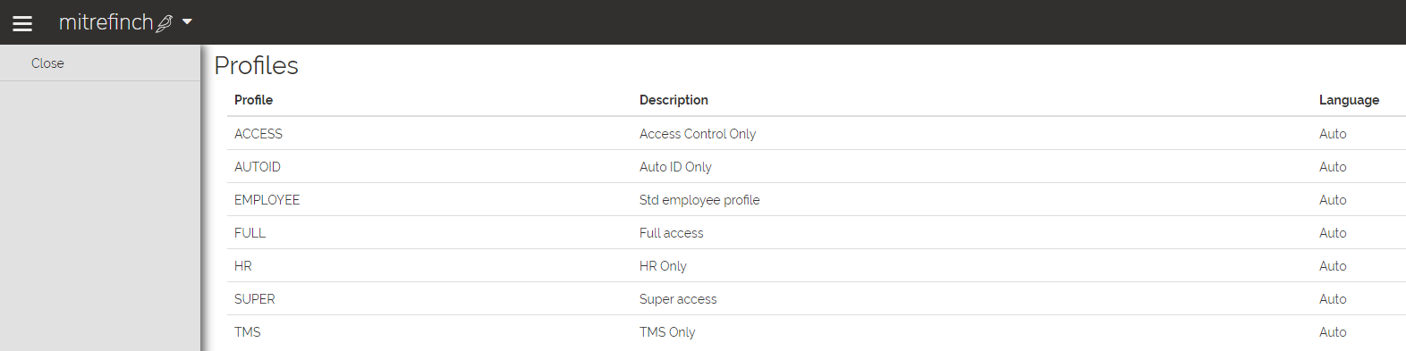 Click Close to return to the main Language maintenance page. Changes to a TMS profile language will be displayed the next time a Supervisor and Employee with the modified Profile logs in to TMS.