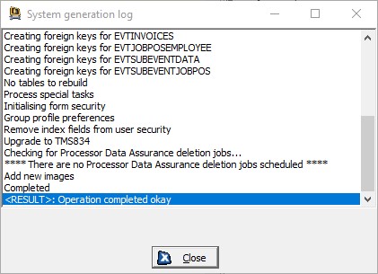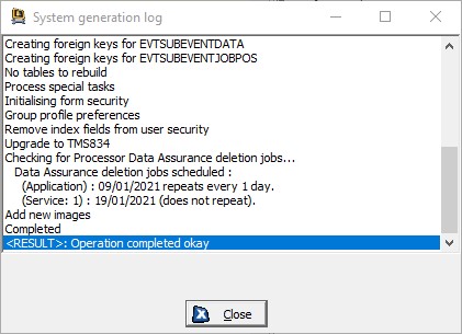 With this version of TMS 8, the automatic job has been removed. Now, Employees will only be deleted if a job has been manually set up. A new log has been added to the System generation log for the Processor to indicate that there are no manual jobs: