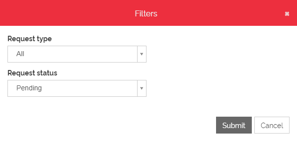 Select an option and click Submit to filter the Requests list by Type.