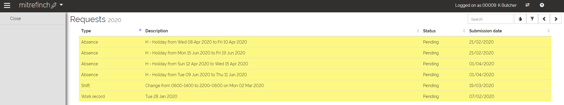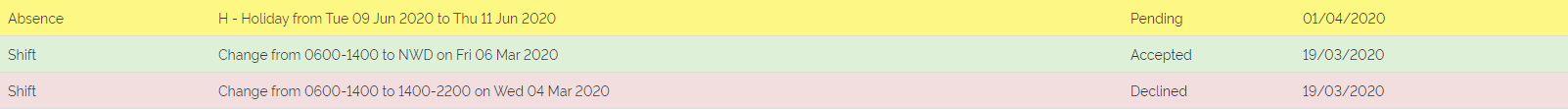 Shift — when you make a change to the Shift you are going to work, a Shift change request is made.