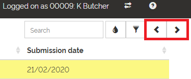 To view any Requests you have made in a different year, click on the navigational arrows in the top-right corner of the page:
