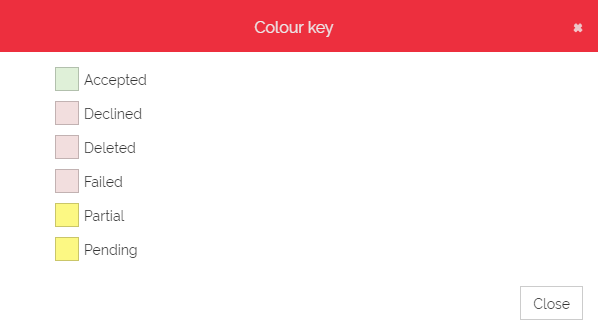 The key shows the colour and status for each request. Below is an example of how Requests are colour coded: