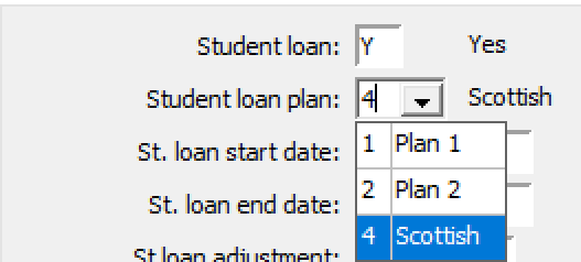 Support has been added to Flexipay 2.54 for Scottish Student loan plans. Plan 4 Student loan plans have been added to the drop-down menu in the Student loan tab of the Employee details window: