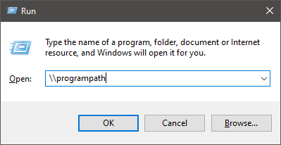 On the new Client PC, go to the start menu and open the Run program, or press the Windows key and R. Type in the Program path from LOCALCFG, and then click OK.