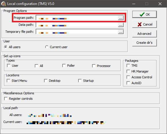 Open LOCALCFG.EXE on the resulting folder, choose TMS as the package, and then fill in the details of the Client PC. Click OK to save your changes.